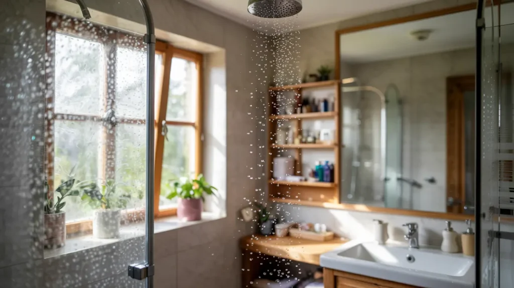 Run the exhaust fan during showers and keep it on after. Crack the door open when you can. Repair leaks fast, even small drips. Wipe down wet corners near the shower if they stay damp.