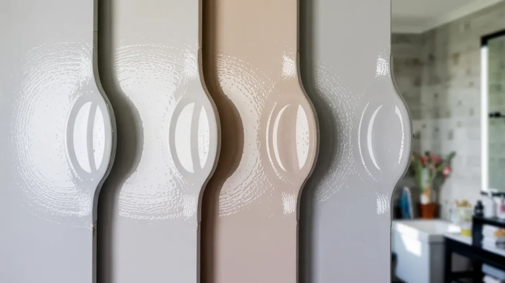 Matte or flat can look great, but it is risky in humid rooms. It scuffs easier and can look patchy after cleaning. If you love the look, keep it for low moisture bathrooms with strong airflow.
