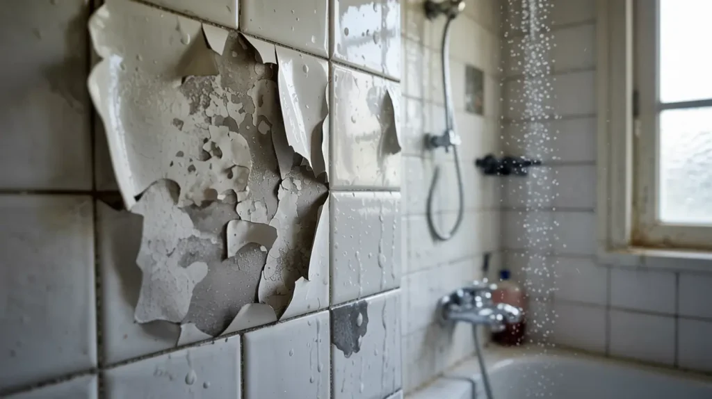 Peeling near the shower usually means moisture or poor prep. Improve airflow, clean well, prime, then repaint.