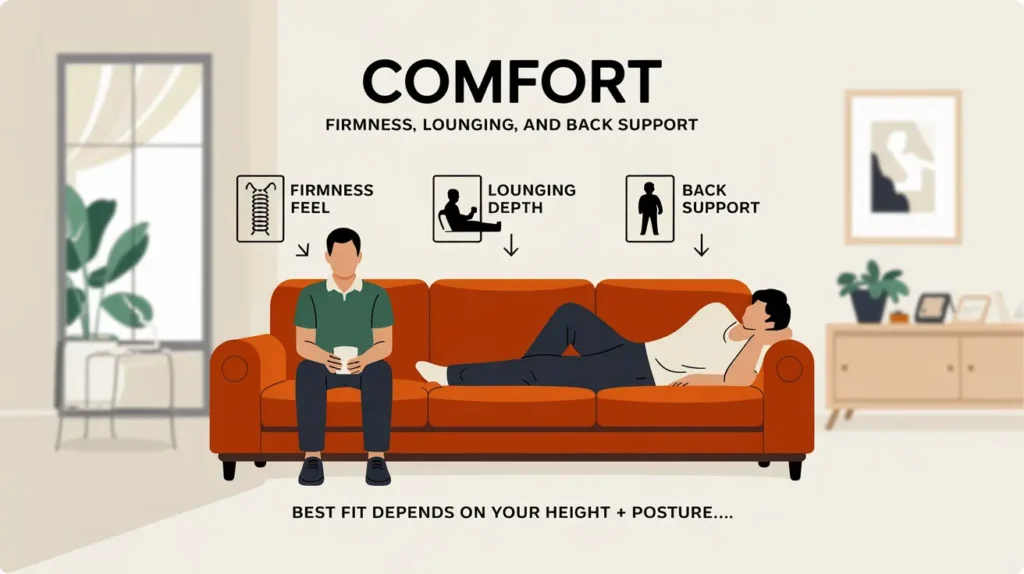A firm sofa feels supportive, not pillow-soft. Many reviews describe the sit as firm but comfortable.