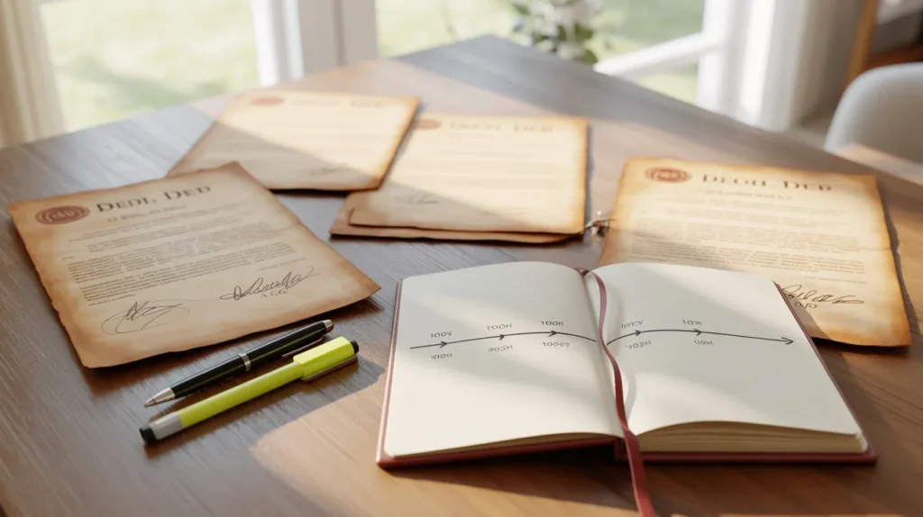 Use deed records from the recorder of deeds or county clerk. Work backward from the newest deed to older transfers. This creates your ownership timeline.