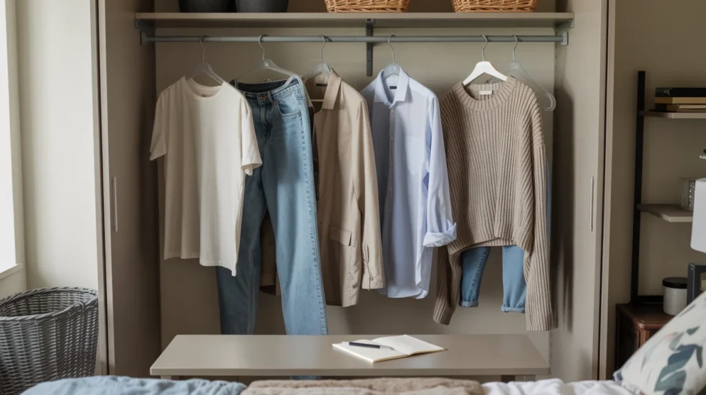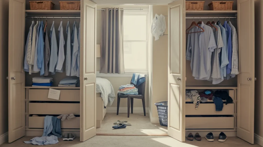 Before you buy organizers, look at what you own and how you live. Most people store clothes like a catalog, not like a real week. That mismatch creates clutter. Think about your last seven days. Which items did you wear twice? Which items stayed untouched. Which pieces caused stress because they were wrinkled, missing, or hard to reach. Those answers tell you what deserves prime space. Here is a quick check you can do in ten minutes. Pull out five items you wear often. Now find where they should live. If any item takes more than one move to put back, your layout needs a change.