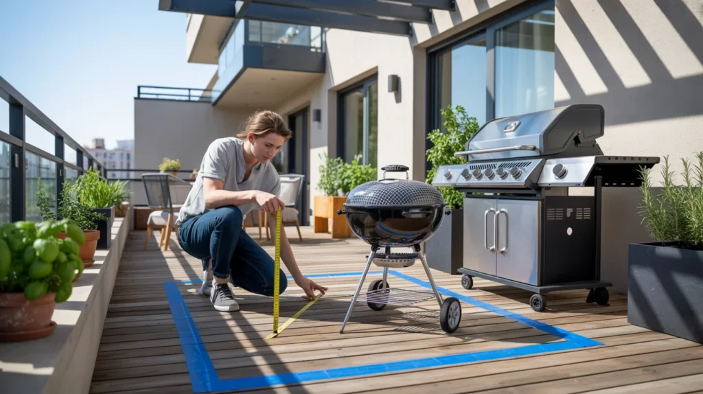 Shade helps, but it can trap smoke if the space is tight. Keep airflow open on at least one side. Avoid fabric curtains near heat. If you use a canopy, place the grill closer to the terrace edge. That improves smoke flow.